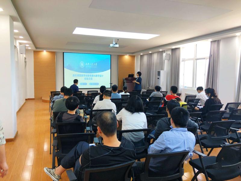 任燕以《高校课堂教学创新竞赛&教学设计经验交流》为题做了报告。她对高校课堂教学创新竞赛的赛制规则进行了简要介绍,对当下课堂教学创新竞赛新的比赛要求作了详细讲解。随后,任燕对教学内容的选取及教学方案设计进行了示范讲解,她向与会教师建议选题时要与生活相结合,注重运用新的课程教学理念组织语言、设计教学内容。报告结束后,与会教师围绕创新理念、创新方法、教学内容设计等方面内容与任燕老师进行了深入、热烈的交流。