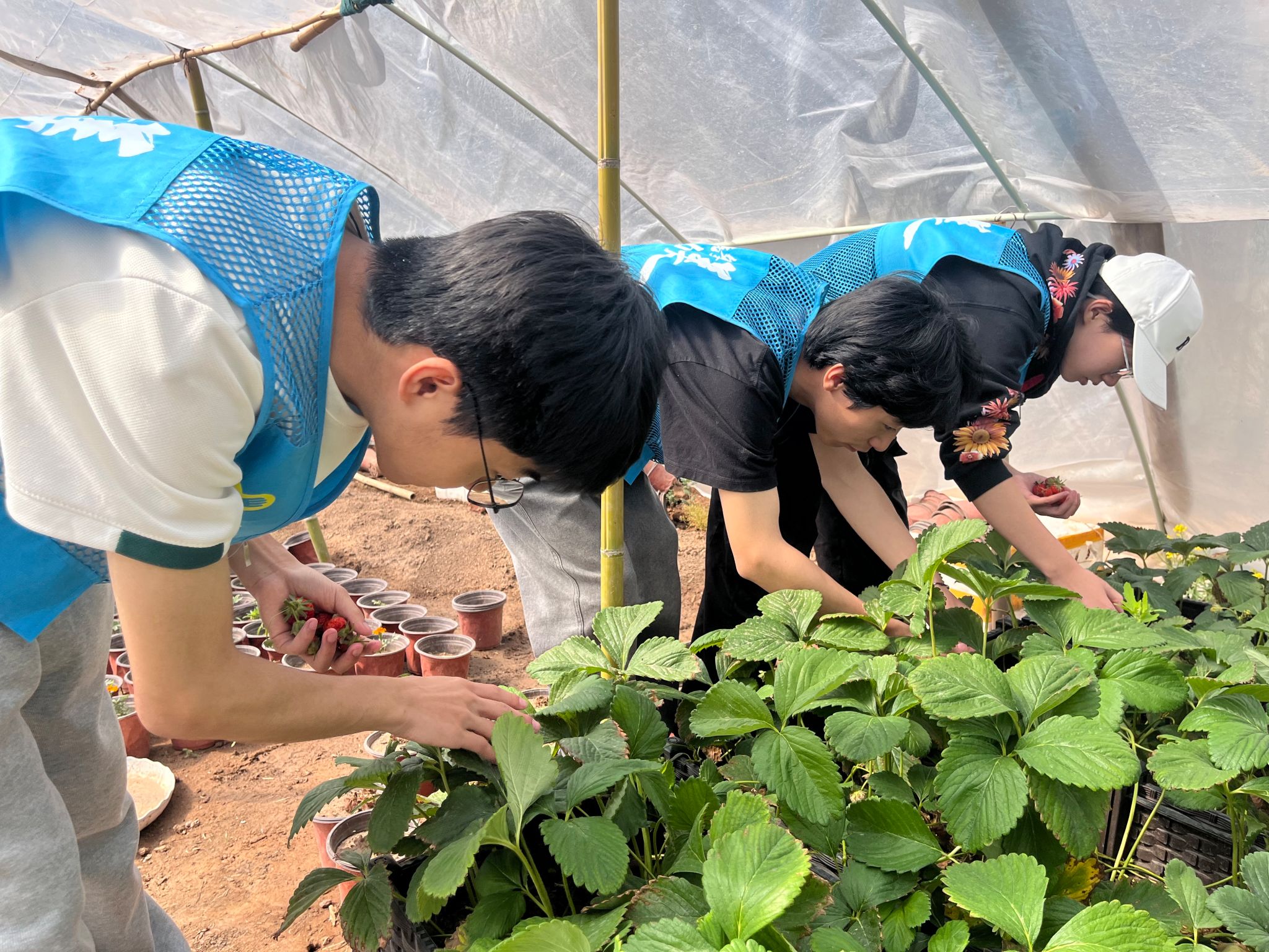 此次活动中所采摘的草莓,皆源自2024年10月机电工程学院学生于耕读小园内亲手栽种的草莓苗。在学院劳动教育导师于增利老师的指导下,历经半年多的悉心培育,草莓苗茁壮成长,最终迎来丰收。活动过程中,学生有序穿行于草莓丛间,按照标准流程采摘成熟果实,现场氛围热烈序。在采摘过程中,于增利老师还就草莓种植与养护与学生展开交流,展现出良好的专业素养与实践能力。