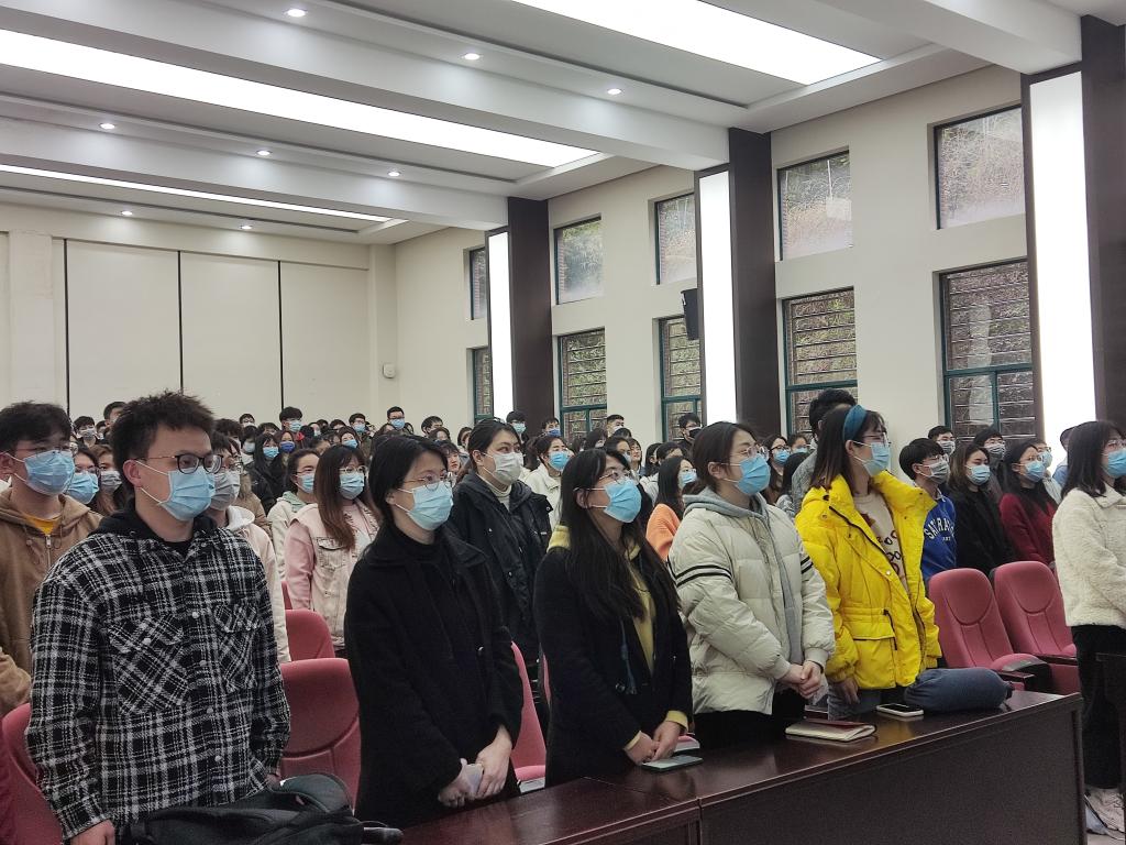 2022年3月4日,bat365在线平台官网组织学院研究生在新化工楼D区报告厅集体观看全国政协十三届五次会议开幕式。
