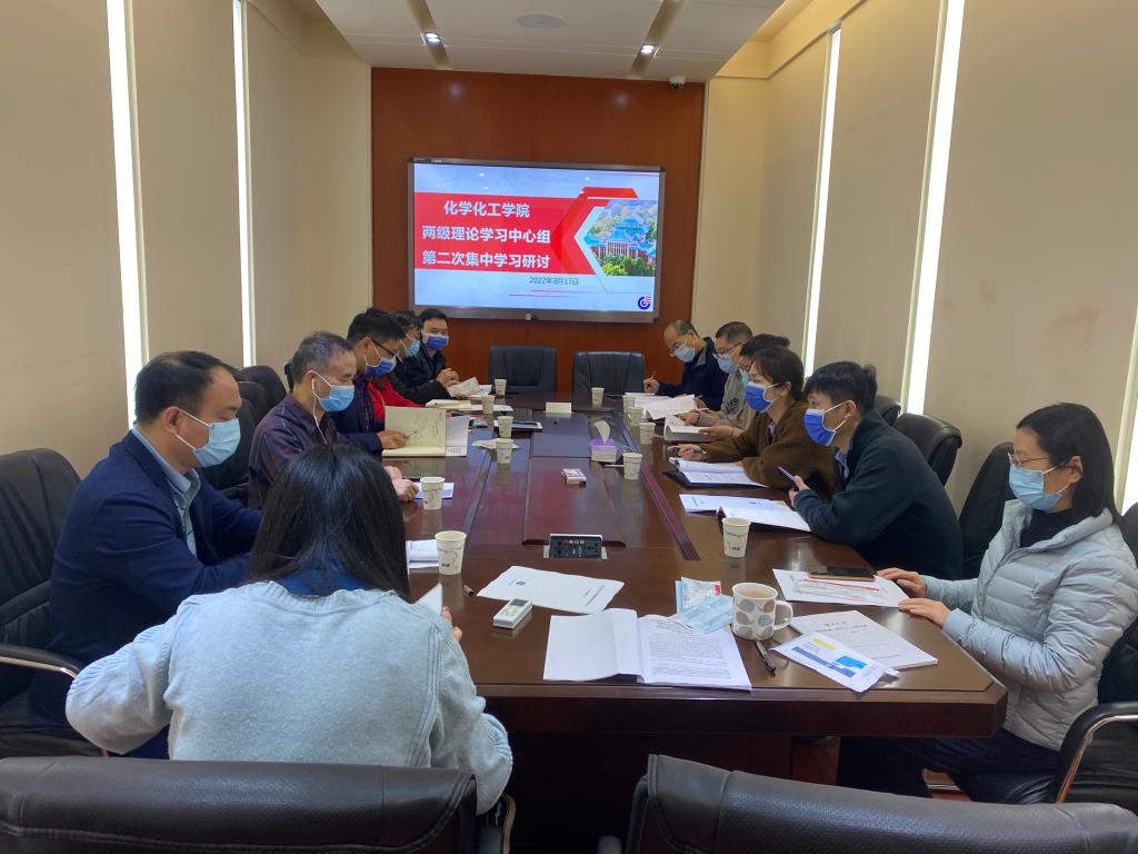 3月17日下午,bat365在线平台官网党委两级理论学习中心组开展2022年度第2次集中学习。学院办公室主任丁杨领学,中心组全体成员参加。