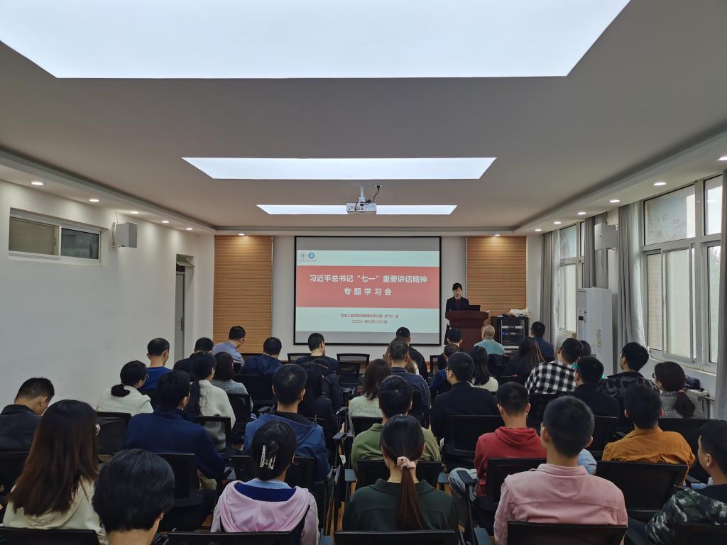 为深入学习贯彻习近平总书记“七一”重要讲话精神,扎实推进党史学习教育,进一步激发全院师生党员学习“四史”的积极性,2021年9月28日,76net必赢线路检测中心特邀请学校离退办党委书记张平老师为学院师生党员做了题为《歌声中的党史记忆》主题报告。学院全体教师党员和部分学生党员参加了报告会,报告会由学院党委书记王鸣媛主持。