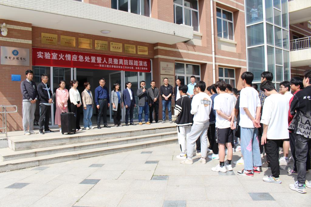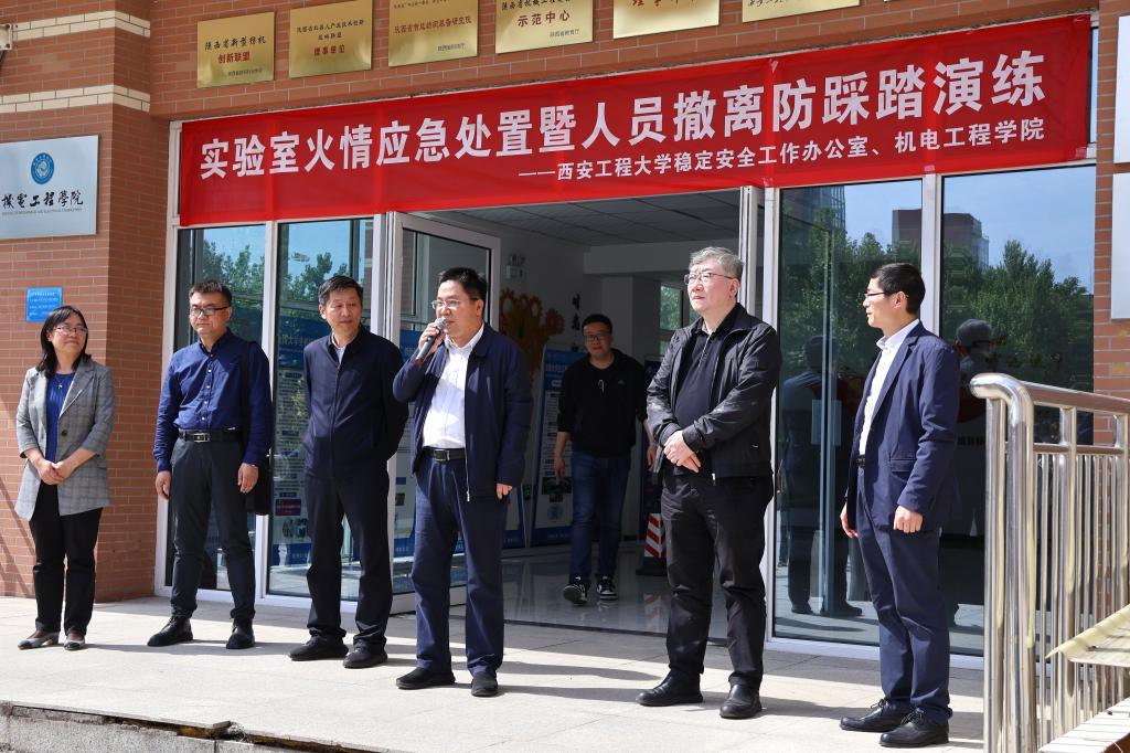 4月27日下午,必赢官网稳定安全工作办公室、实验室管理处、保卫处、学生工作部(处)、研究生工作部联合76net必赢线路检测中心开展实验室火情应急处置暨人员撤离防踩踏演练,特邀西安建筑科技大学资源工程学院安全管理专家刘鹏刚莅临指导。校党委副书记井浩,校党委副书记、纪委书记辛永昌,副校长戴鸿等现场观摩。