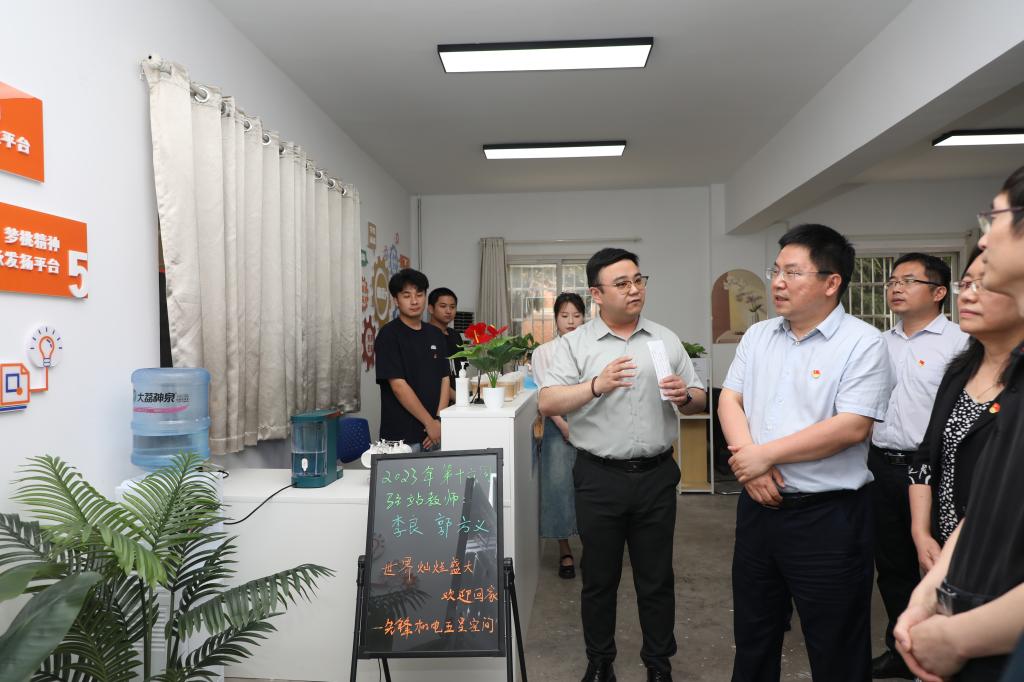 活动期间,与会人员在“学生公寓党员之家”进行座谈交流;观看了由学院2020级本科生制作的“一站式”学生社区宣传视频,并就社区建设情况提出了相关意见建议;参观了“一站式”学生社区服务站、学生公寓自习室、公共区域党建文化墙、学生党员宿舍、学生公寓党员之家和“梦桃式”互促互优课堂等空间赋能建设情况。