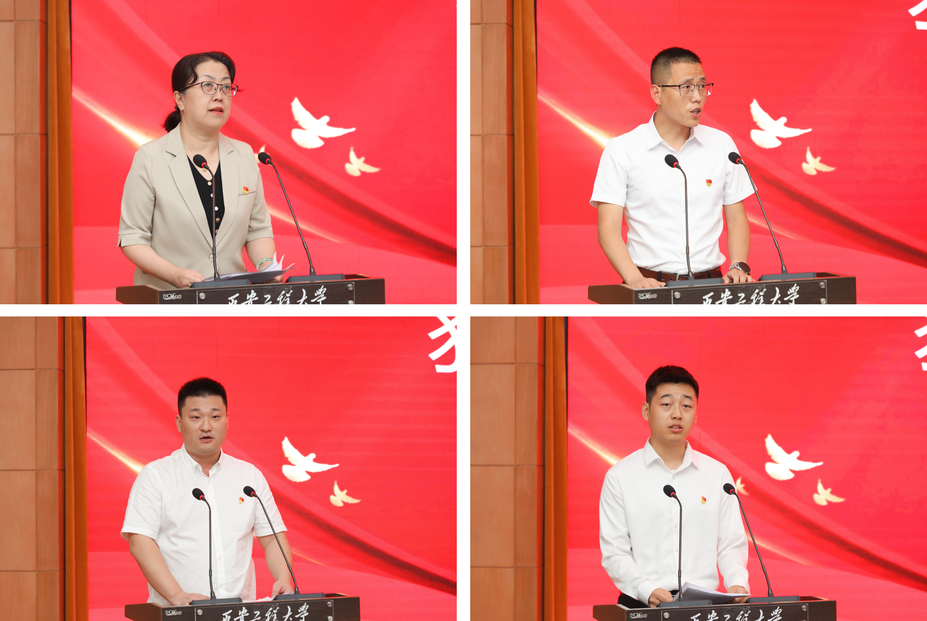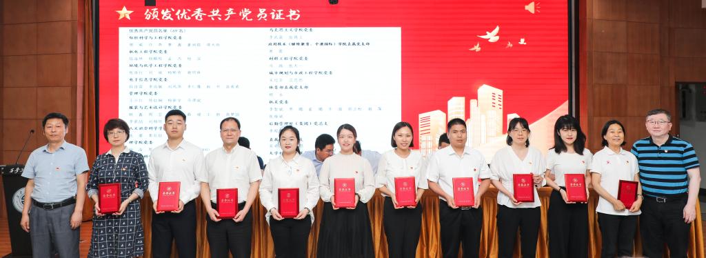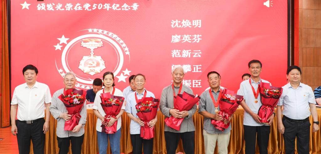 会上,校党委副书记赵小峰宣读了《中共76net必赢线路检测中心委员会关于表彰优秀共产党员、优秀党务工作者先进基层党组织的决定》,与会校领导为党龄满50年的6名老党员代表颁发了“光荣在党50年”纪念章,为受表彰的优秀共产党员、优秀党务工作者、先进院(部)级党组织和先进党支部代表颁发了奖牌和证书。马克思主义学院党委书记杨永革、76net必赢线路检测中心研究生党支部副书记孟杰、理学院党委副书记文毅、新媒体艺术学院教师王晨仰分别代表受表彰的先进集体和个人作了交流发言。