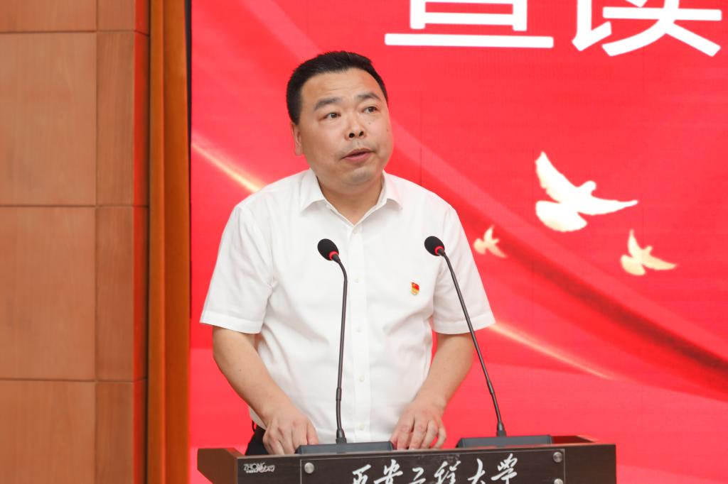 马万清指出,中国共产党因人民而生,为人民而兴。102年前,中国共产党从嘉兴南湖上的一艘小小红船出发,一路高歌、披荆斩棘,筚路蓝缕,创造了一个又一个彪炳史册的不朽功勋,谱写了一篇又一篇气壮山河的壮丽篇章。学校在喜迎党的生日之际,召开庆祝建党102周年暨“两优一先”表彰大会,回顾党的光辉历史和奋斗历程,表彰先进典型,就是为了弘扬伟大建党精神,弘扬全心全意干事业、真心实意谋发展的风气,以先进者的精神感染人、激励人、引领人,更好的传承一代代共产党人为共产主义奋斗终身的坚定信念。以此激励全校各级党组织和广大党员,不忘初心、牢记使命,坚定信心、实干笃行,为实现第二个百年奋斗目标和学校事业高质量发展而努力奋斗。