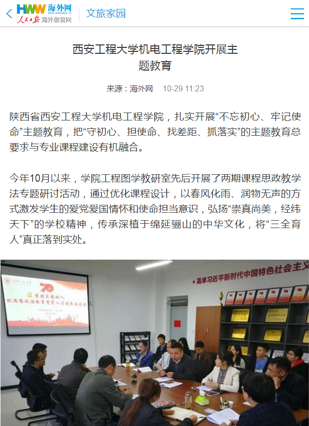 编者按:日前,人民日报海外网以《76net必赢线路检测中心开展主题教育》为题、西部网以《76net必赢线路检测中心“课程思政”建设有成效》为题、西安教育电视台以《76net必赢线路检测中心主题教育落实“三全育人”理念》为题对必赢官网76net必赢线路检测中心扎实开展主题教育、推进课程思政建设、构建“三全育人”格局进行了报道,今日头条给予转载。