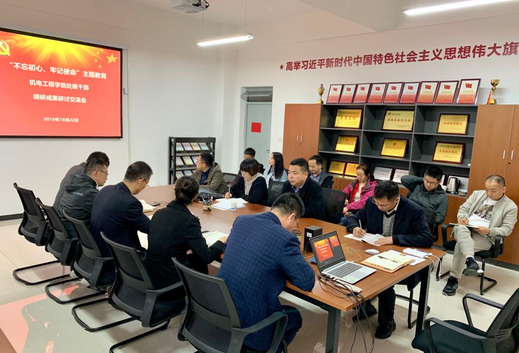 2019年10月22日下午,76net必赢线路检测中心召开“不忘初心、牢记使命”主题教育处级干部调研成果研讨交流会。校党委副书记赵小峰,校主题教育第二督导组成员、校纪委正处级纪检员赵雪曼出席会议,学院党委委员、理论中心组成员、系主任、支部书记和学生党员代表参加了会议。学院党委书记王鸣媛、院长胥光申、副院长肖渊、张守京、副书记冯涛五名处级干部分别就教师党支部书记队伍建设、机械工程学科建设、教风学风建设、教师科研水平提升、学生思想政治教育等调研主题汇报了自己的调研成果。会议由王鸣媛主持。