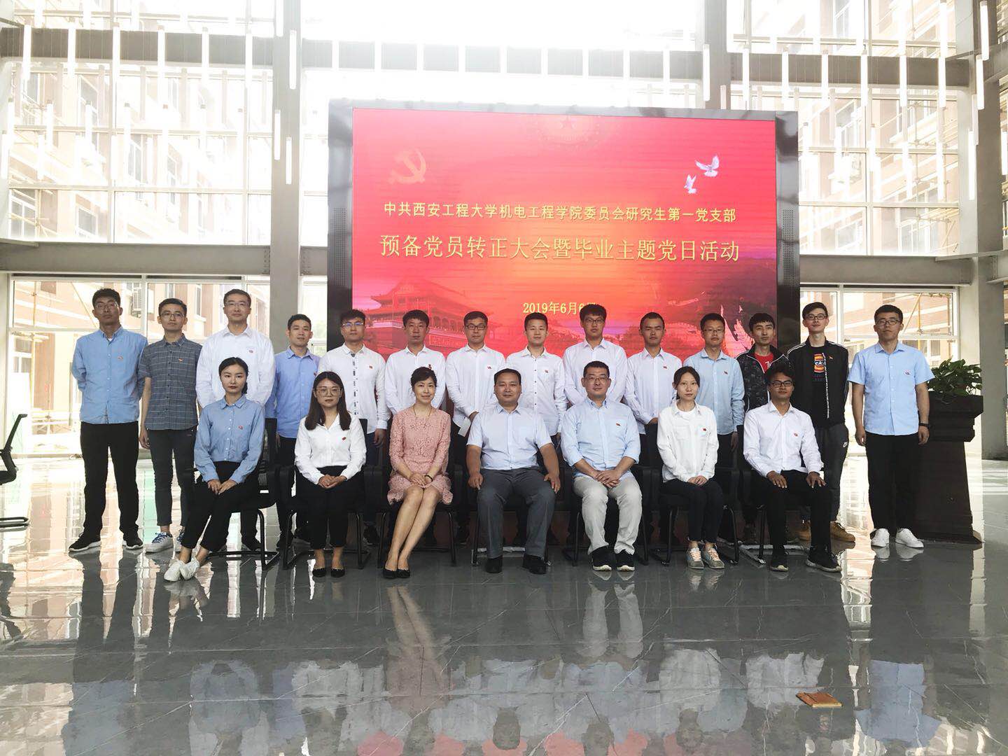 2019年6月6日上午,76net必赢线路检测中心研究生第一党支部在临潼校区笃行楼一楼大厅召开预备党员转正大会暨毕业主题党日活动。校党委组织部副部长刘俊富、学院党委书记王鸣媛应邀参加活动。活动由研究生第一党支部书记冯涛主持。