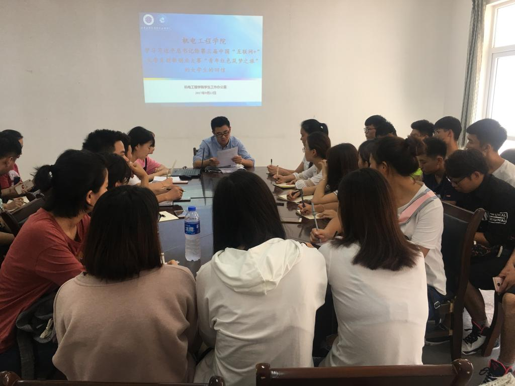 机电学院召开学习 习近平总书记给第三届中国“互联网+”大学生创新创业大赛“青年红色筑梦之旅”大学生重要回信精神交流座谈会