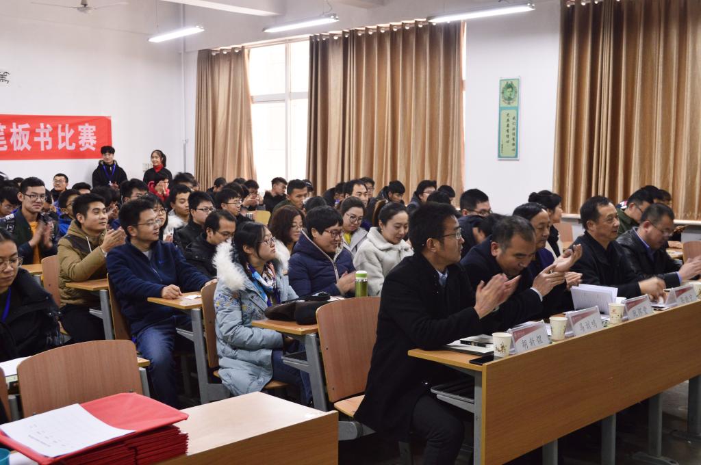 本次比赛以“学讲话精神树师德,练教学技能育新人”为主题,旨在落实校党委关于深入学习贯彻习近平总书记在全国教育大会上的重要讲话和新时代全国高等学校本科教育工作会议的指示精神,将“两学一做”学习教育常态化制度化与师德师风建设、教学能力提升相融合,增强党建工作的实效性。本次活动受到学院教职工的热烈响应,纷纷利用课余时间深入学习习近平总书记系列讲话等内容,在教室或教研室勤练粉笔板书,对理论水平和教学能力的提升起到了积极的促进作用。