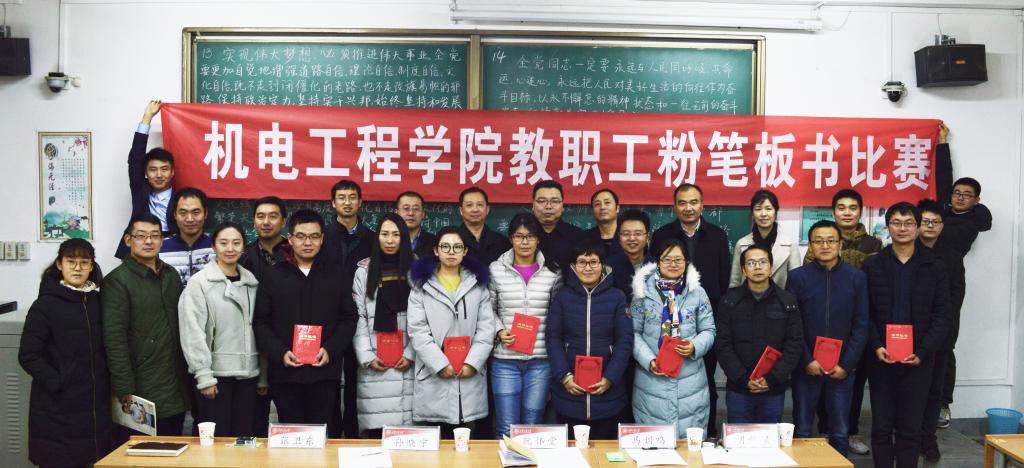 2018年12月7日中午,76net必赢线路检测中心首届教职工粉笔板书比赛决赛在临潼校区教学楼A-132举行,经各党支部初赛选拔进入决赛的16名选手参加了比赛。校党委副书记赵小峰亲临活动现场。
