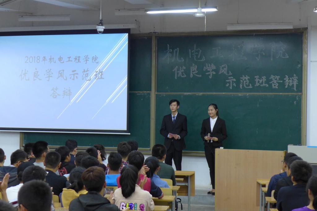 活动伊始,首先,由冯涛致开幕词,冯老师对优良学风示范班的内涵进行了全面的阐释,鼓励并督促全体同学加强班集体建设,珍惜学习机会,为营造积极和谐的班集体氛围贡献力量。随后,各答辩班级代表围绕学风建设,结合专业优势,从班级建设、优良学风创建成果和校园文化活动等多方面进行了精彩的展示。参加答辩的班级学生代表感情充沛、条理明晰,充分展示了班级团结互助、积极进取的良好氛围。一段段视频、一张张照片,记录着班级从大一认知转变到大二拼搏进取再到大三硕果累累。答辩结束后,黄超、杜静分别进行了总结点评,他们在充分肯定了各班学风建设所取得的成果之外,也如实指出了各班级存在的问题,并提出了相应整改建议,他们希望全体同学要以本次学风示范班评比为契机,努力奋进,共同营造和培育良好的班风和学风。最后,通过评委老师现场打分、一致推荐,2017级过程装备与控制工程一班从参选班集体中脱颖而出,成为学院“优良学风标兵班”。(黄超)
