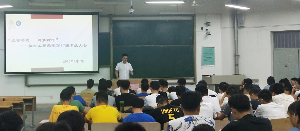 9月13日,76net必赢线路检测中心在临潼校区B—133教室召开2017级年级大会,学院2017级辅导员黄超就本年级新学期工作进行了说明和安排。