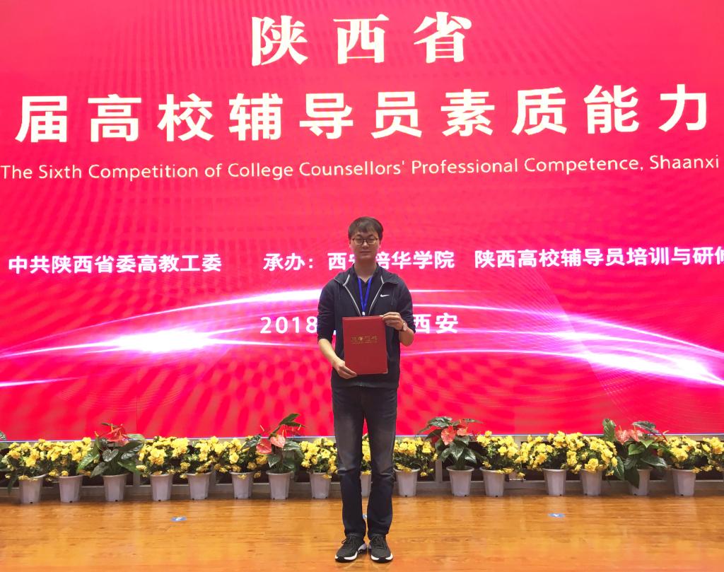 2018年4月28日,陕西省第六届高校辅导员素质能力大赛决赛在西安培华学院圆满落幕,来自全省79所高校的123名辅导员参加了比赛,必赢官网76net必赢线路检测中心2015级辅导员秦方刚经过四个环节的激烈比拼后脱颖而出,荣获三等奖。