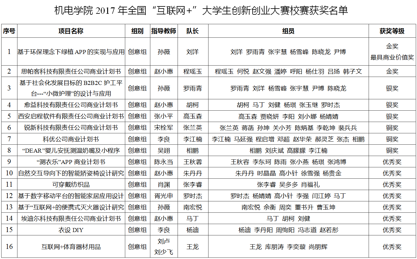 2017年“互联网+”大学生创新创业大赛校赛在临潼校区举办,大赛分为初赛、复赛和决赛三个阶段。机电学院积极开展宣传动员工作,共征集40项作品。