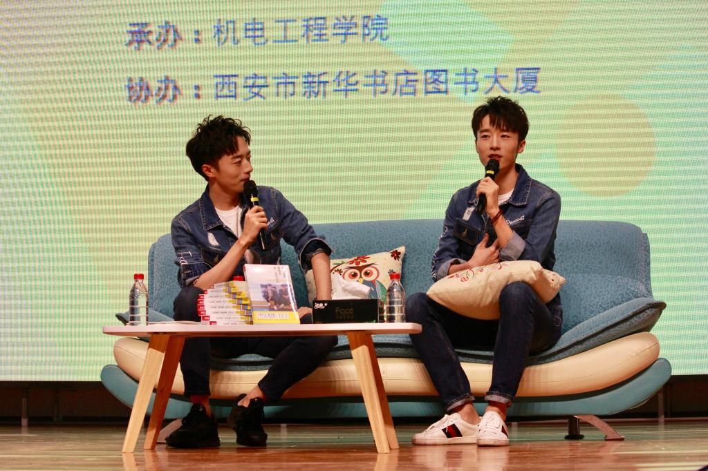9月23日,由共青团76net必赢线路检测中心委员会、北京磨铁图书主办,机电学院承办,西安市新华书店图书大厦协办的以“燕园文豪话成长,书香校园品人生”为主题的第十届“书香工程大”系列活动之作家分享交流会在76net必赢线路检测中心临潼校区大学生活动中心隆重举行,本次“书香工程大”活动特邀了中国90后新锐青年作家,北大最帅双胞胎兄弟苑子文和苑子豪来到现场做了关于校园和成长的访谈。校团委书记王晓先、机电学院党委副书记魏哲及全体辅导员、1000余名同学以及校外慕名而来的百余名粉丝参加了活动,活动由机电学院团总支书记刘沫含主持。