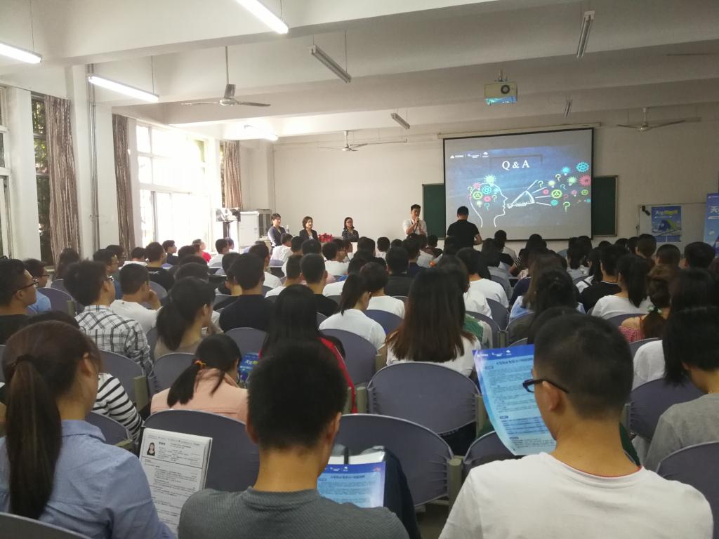 深圳天安骏业投资发展集团主要参与城市升级改造项目的都市新兴产业综合体开发运营与产业投资服务,公司具有丰富的科技产业园开发建设、运营、管理经验,强调科技创新与商业、文化、地区经济的融合,其开发模式为市场化运作、集开发与服务于一体的科技产业集群综合开发模式。宣讲会上,深圳天安骏业投资发展集团校招团队分别从集团规模、集团战略、组织架构、企业精神、公司产品、员工培训及发展等方面对集团进行了详细的介绍,并对在场同学提出的问题进行了详细的解答,使同学们对企业有了更加深层次的认识。
