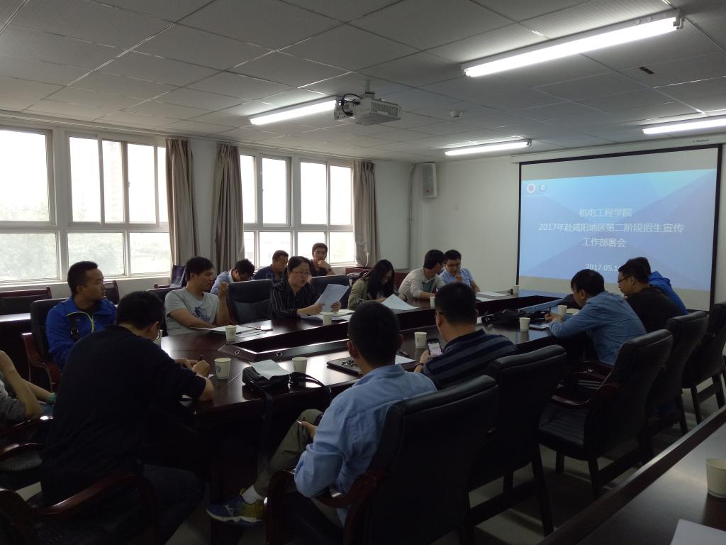 5月10日,机电学院召开2017年赴咸阳地区第二阶段招生宣传工作部署会,机电学院党委书记杨永革、副书记魏哲,各招生宣传小组负责人及小组成员参加了会议,会议由杨永革主持。