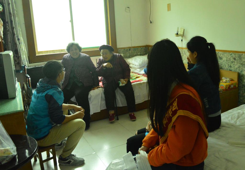 当天,学院青年志愿者带着水果和蛋糕等礼品来到了临潼金秋爱心乐园,敬老院的工作人员和老人们对青年志愿者的到来表示欢迎,志愿者们三人为一组,来到各位老人居住的房间,陪他们拉家常、宣传养生知识,帮助他们整理内务,打扫卫生,给他们带去了欢乐。看到老人们的笑容,大家充分体会到了志愿服务的意义所在。