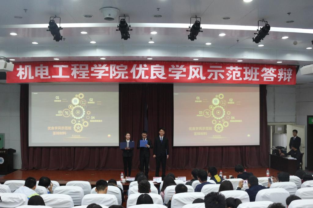 为了推进优秀班集体的建设工作,切实加强学院的学风建设, 11月18日,机电学院举办了优良学风示范班答辩活动,马克思主义学院曹青老师、机电学院团总支书记刘沫含、2015级辅导员秦方刚、2016级辅导员李良担任答辩评委,2013级、2014级、2015级、2016级部分学生干部和参加答辩的同学共计300余人参加了答辩活动。