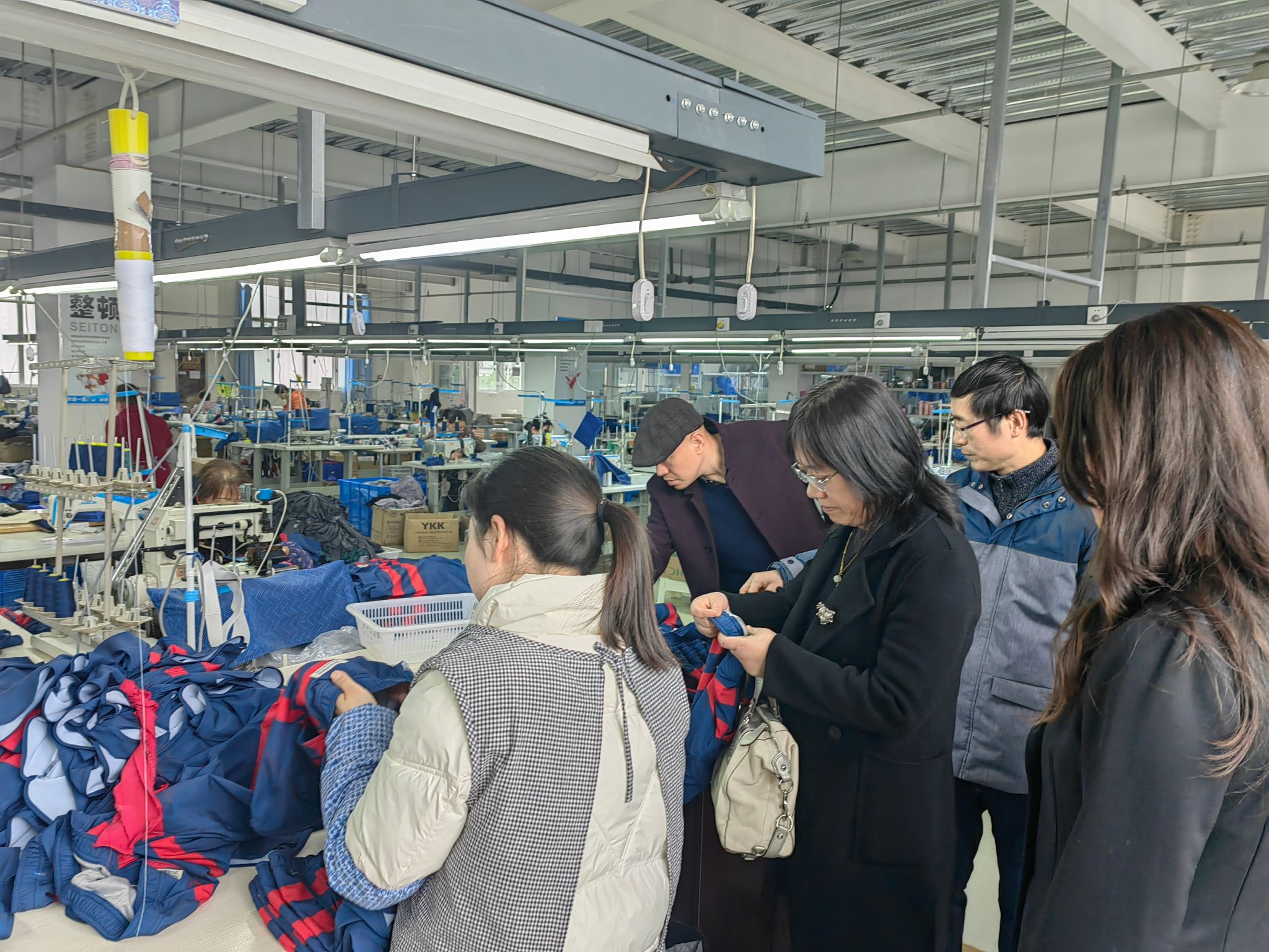 2024年3月14日,76net必赢线路检测中心党委书记阚佩、院长赵小惠、副院长付翀、纺织装备研究所负责人张团善以及院长助理孙戬等一行5人赴安康市汉滨区开展产教融合调研活动。在五里工业园园区党工委书记李朝华和安康安瑞智能制造有限责任公司总经理王亮的陪同下,参观了五里工业园区纺织服装类多家企业。学院院长赵小惠和园区党工委书记李朝华共同为必赢官网位于安瑞智能制造有限责任公司的实习基地和研究生工作站揭牌。
