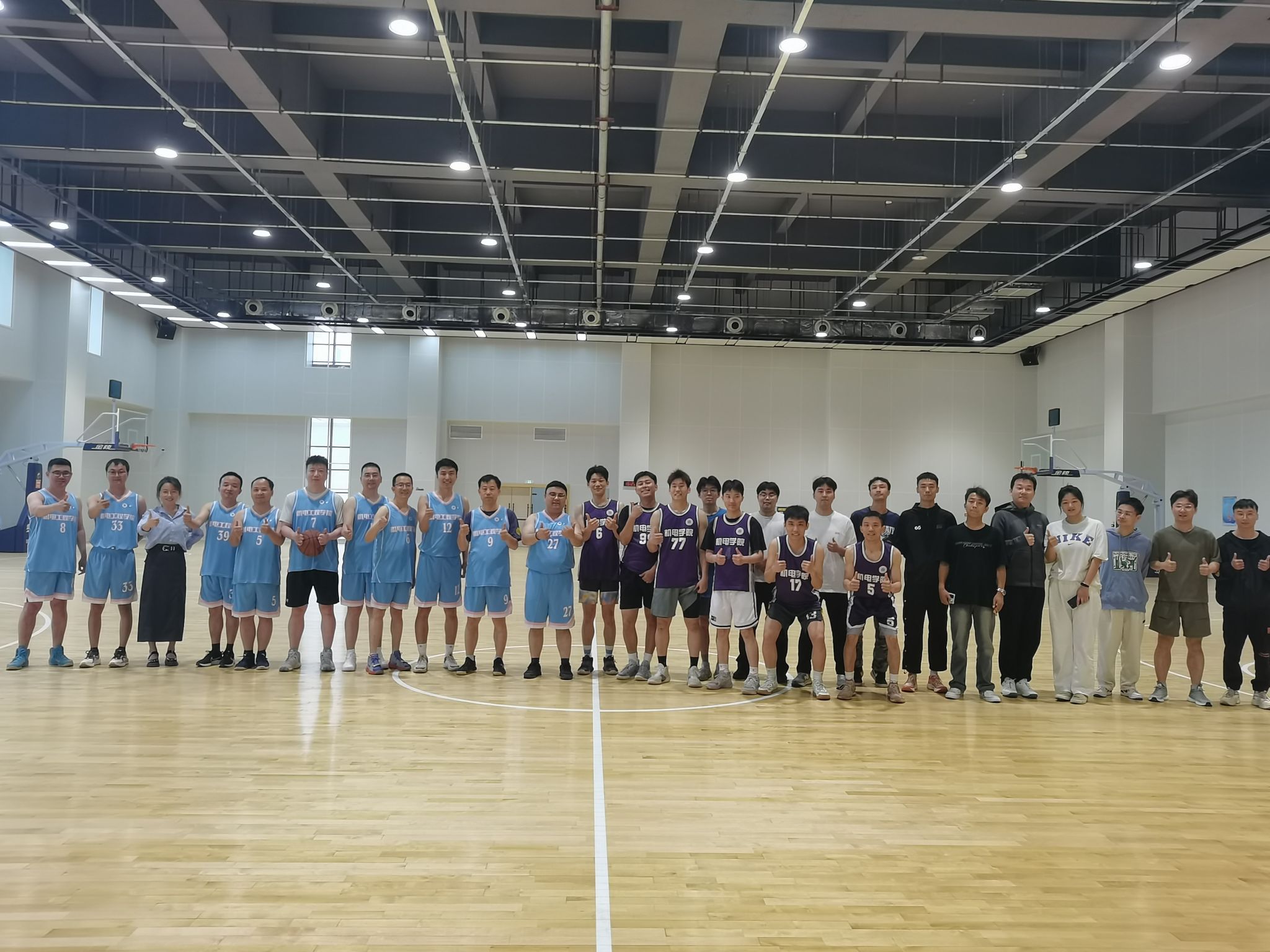 生命在于运动,体育洋溢青春。为欢送2024届毕业生,4月24日下午,76net必赢线路检测中心在临潼校区文体馆组织开展了“欢送杯”师生篮球友谊赛——“机电教工代表队VS机电2020级本科代表队”。
