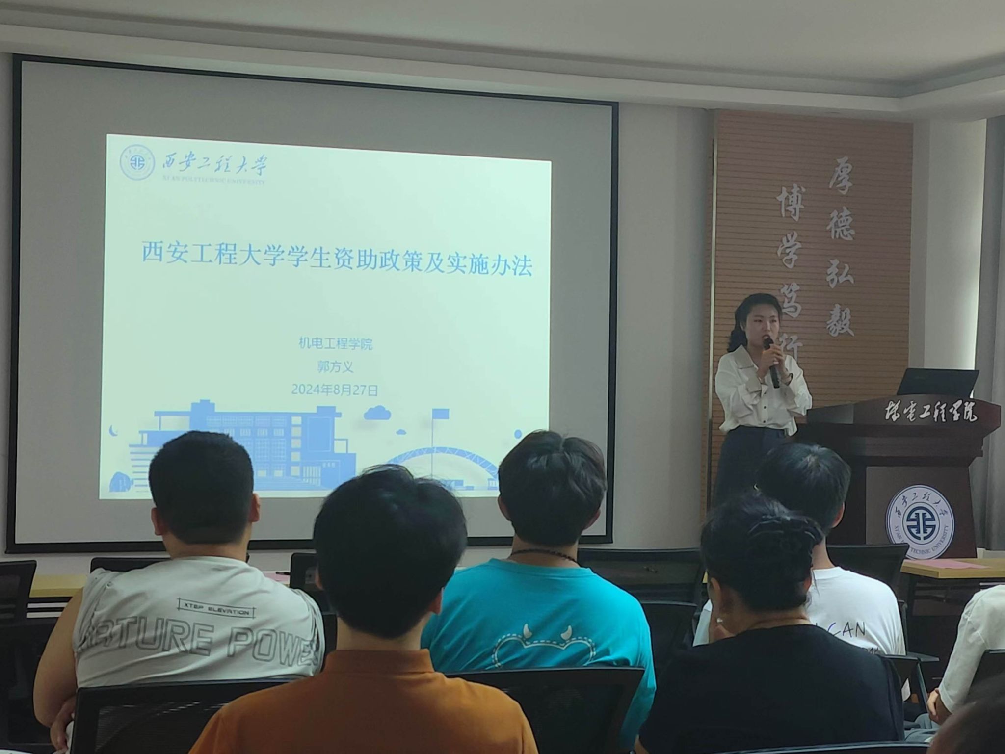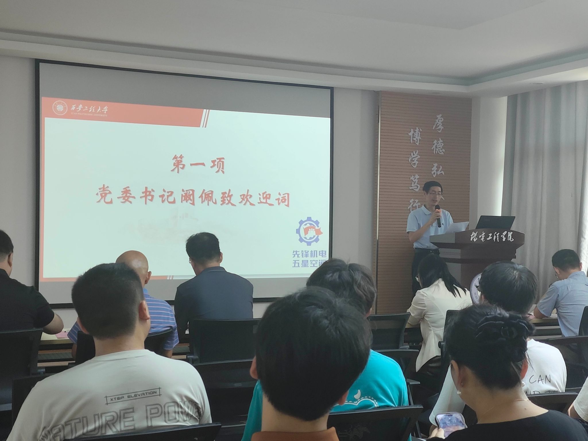 第一环节,阚佩代表学院党委对2024级新生和家长的到来表示热烈欢迎,并以一名老机电人的身份表达了希望,希望家长和学校加强联系,帮助新生尽快转变角色、做好大学规划、树立鸿鹄之志,希望所有学生做到不负时代、不负韶华。赵小惠系统介绍了学院历史、专业发展、师资队伍、人才培养、学科竞赛、校园文化和杰出校友,以及学院优势特色和服务行业地方情况,希望新生始终保持刻苦学习的态度并规划好大学生活,希望家长持续做好对学生学习生活心理各方面的关注。杨鹏程从一名青年教师的角度进行了经验分享,希望新生们始终不能放松学习,要注重提升核心竞争力,做到综合发展,快速成长;希望家长及时鼓励并帮助学生尽快适应大学生活,要建立自主意识并主动学习,进而从容应对压力和挑战。