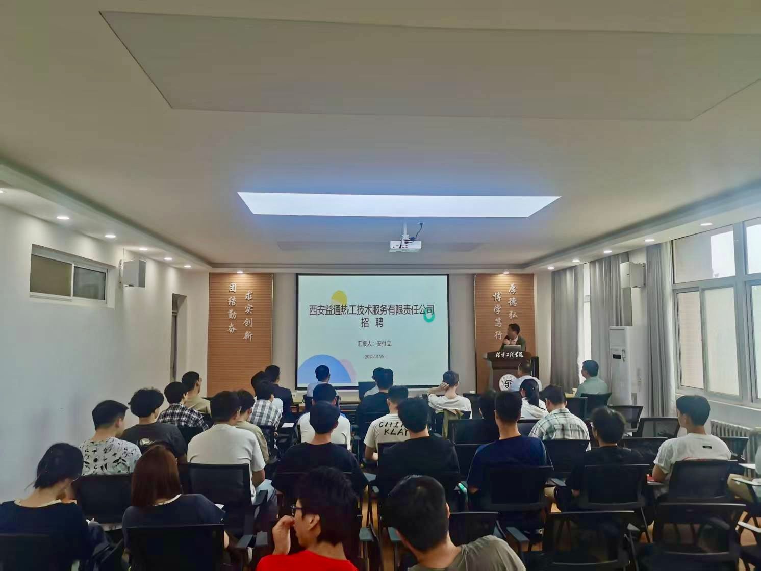 西安益通热工技术服务有限公司一行6人来到学院,就企业发展情况、人才需求及岗位信息进行了详细介绍。企业通过宣传片和PPT展示,向同学们详细介绍了公司的发展历程、业务范围、企业文化及员工职业发展路径。在互动环节,同学们就岗位要求、薪资待遇、工作地点等问题积极提问,企业人员耐心解答,并分享了行业前景和职场经验。宣讲结束后,企业现场接收30余份简历,其中部分优秀毕业生与企业初步达成就业意向。2025届机械设计制造及其自动化专业学生吴旭明表示:“这次宣讲会让我对工程行业有了更深入的了解,公司的技术方向与我的专业很匹配,后续我会积极参加面试。”
