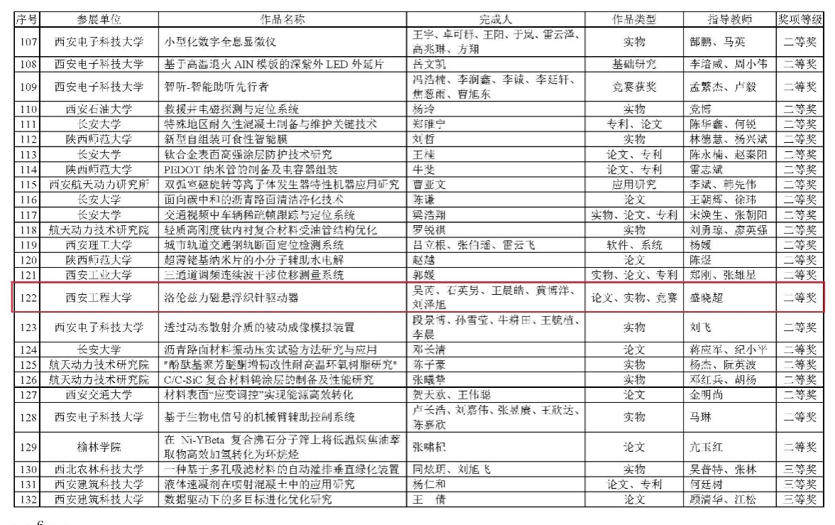 近日,陕西省教育厅、陕西省学位委员会公布了陕西省第六届研究生创新成果展奖项评选结果。经过不懈的努力,必赢官网盛晓超老师指导的硕士研究生石英男、王晨皓、黄博洋、吴芮等同学参赛的作品《洛伦兹力磁悬浮织针驱动器》脱颖而出,入围省决赛并荣获二等奖。