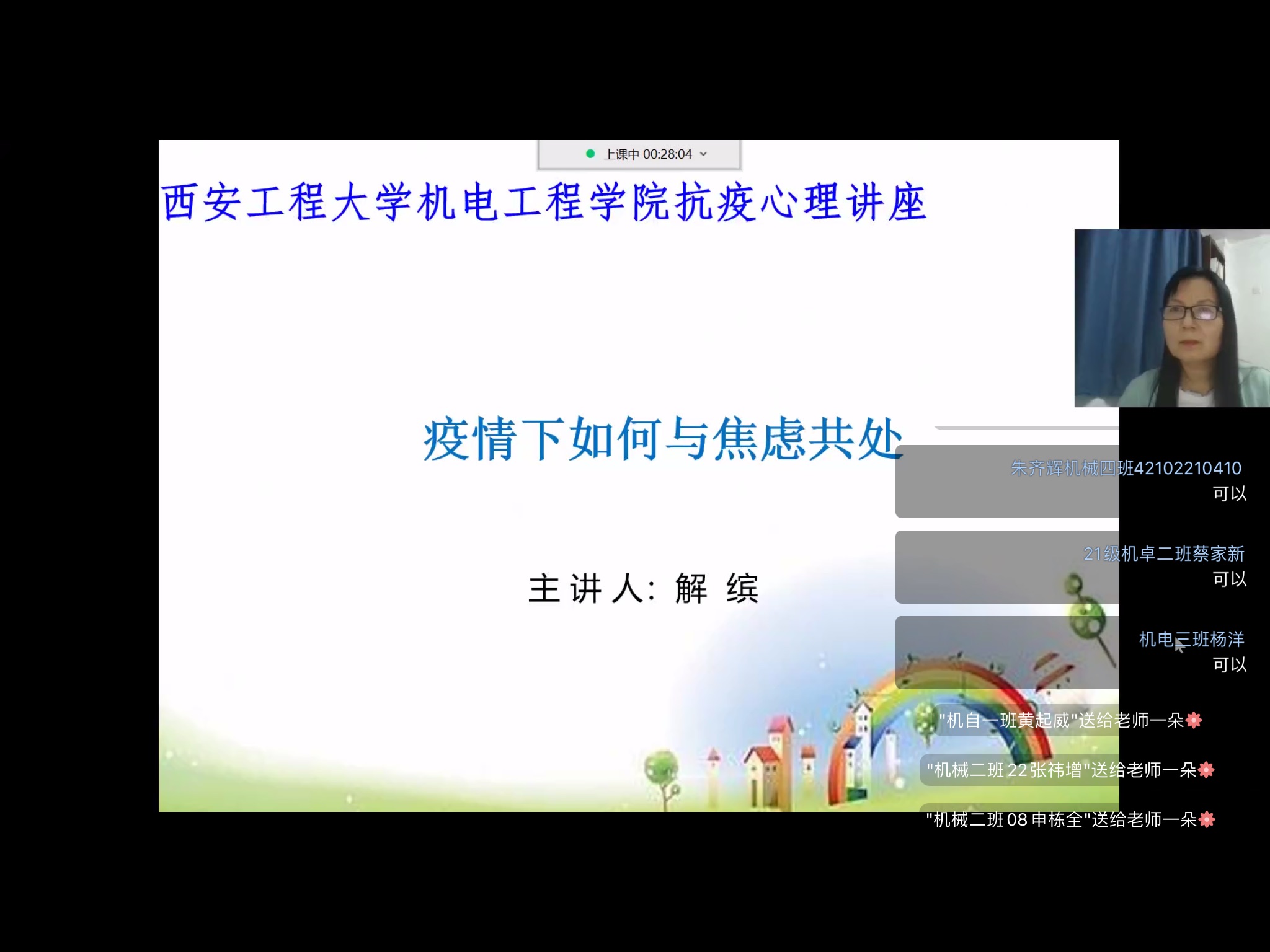 三是充分发挥班团干部,特别是班级心理委员的作用。通过线上主题班会、心得分享、视频观摩等,号召同学们主动学习抗击疫情的科学知识,不信谣,不造谣,增强心理安全感,提升同学们的自信心和班级凝聚力,在一定程度上缓解了同学们疫情期间焦虑恐慌的情绪。