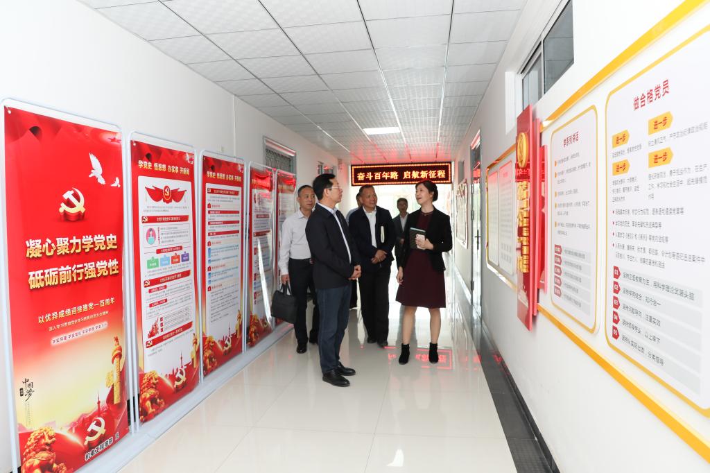 巡回指导组考察了机电学院党建文化习语长廊和党团活动室,查阅了学院党建“双创”有关资料,听取了学院党委书记王鸣媛关于机电学院党委作为教育部首批全国党建工作标杆院系两年来的党建“双创”培育建设情况和党史学习教育开展情况的汇报。