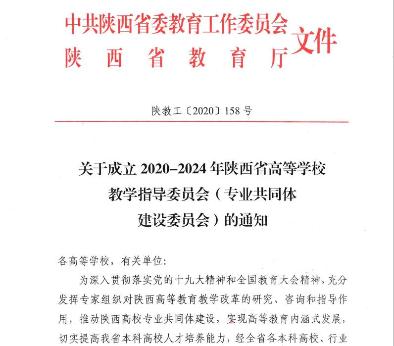 陕西省高等学校教学指导委员会是省委教育工委、省教育厅聘请专家组建的陕西省高等学校本科教育教学最高专家组织,旨在发挥专家组织对陕西高等教育教学改革的研究、咨询和指导作用,推动陕西高校专业共同体建设。