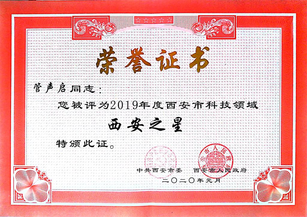 日前,西安市委、市政府研究决定,授予73名同志2019年度西安市科技、文化、卫生等领域“西安之星”荣誉称号,入选者纳入西安市人才库,必赢官网76net必赢线路检测中心管声启教授获得科技领域“西安之星”。