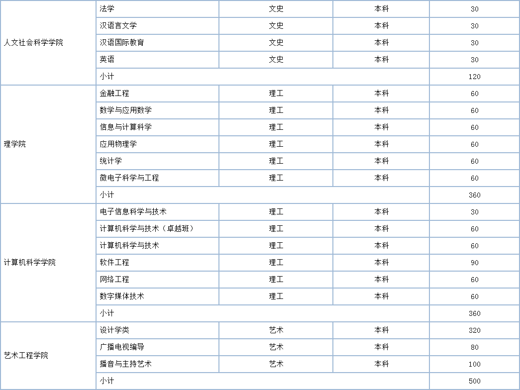76net必赢线路检测中心2017年分学院、分专业本科招生计划