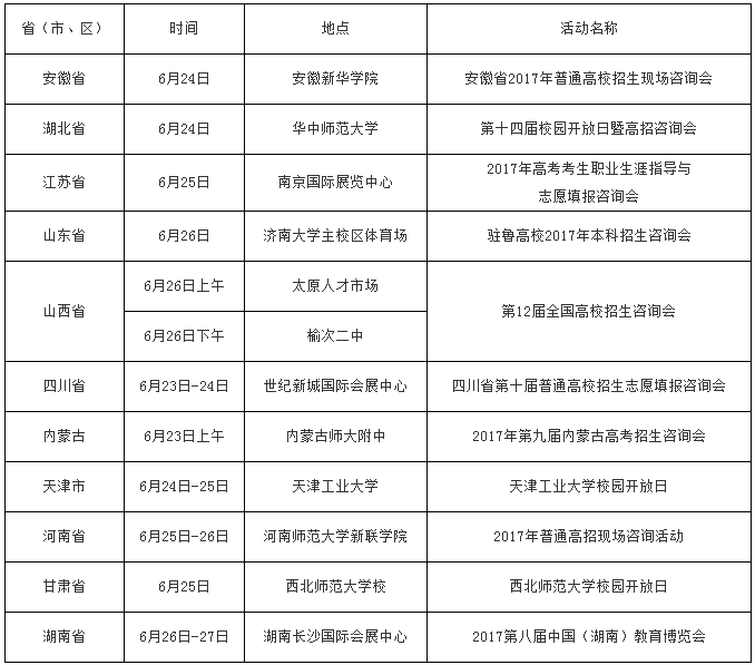 欢迎广大考生和家长就近选择咨询会地点,进行咨询,了解有关情况。