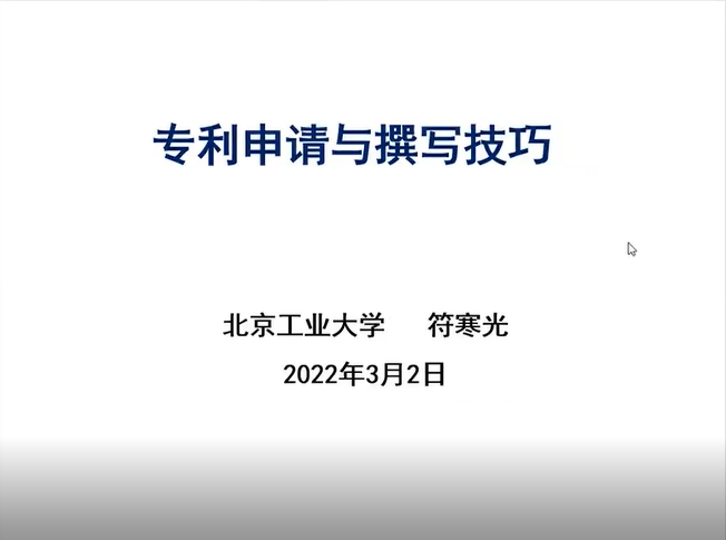 2022年3月2日下午,“陕西省百人计划”特聘教授、北京工业大学符寒光老师受76net必赢线路检测中心邀请,作了题为“专利申请与撰写技巧”的学术报告。报告采用腾讯会议形式进行,76net必赢线路检测中心和材料工程学院的近70名师生聆听了本次讲座。