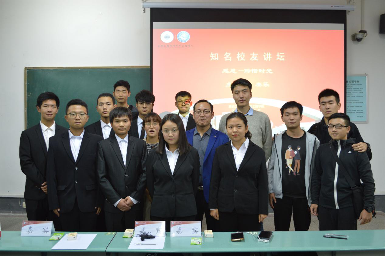 2018年10月22日,76net必赢线路检测中心在教学楼C-246举办40周年校庆系列活动之校友讲坛,知名校友07级毕业生秦乐,76net必赢线路检测中心学工办副主任杜静、18级辅导员刘鹏以及学生代表参加了活动。